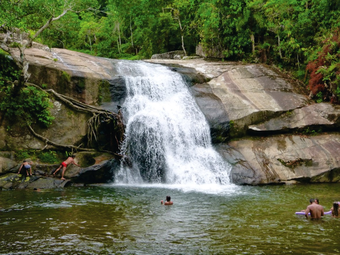 Família TerraLimpa na cachoeira do Prumirim. Sandra, Ivan e Camillinha